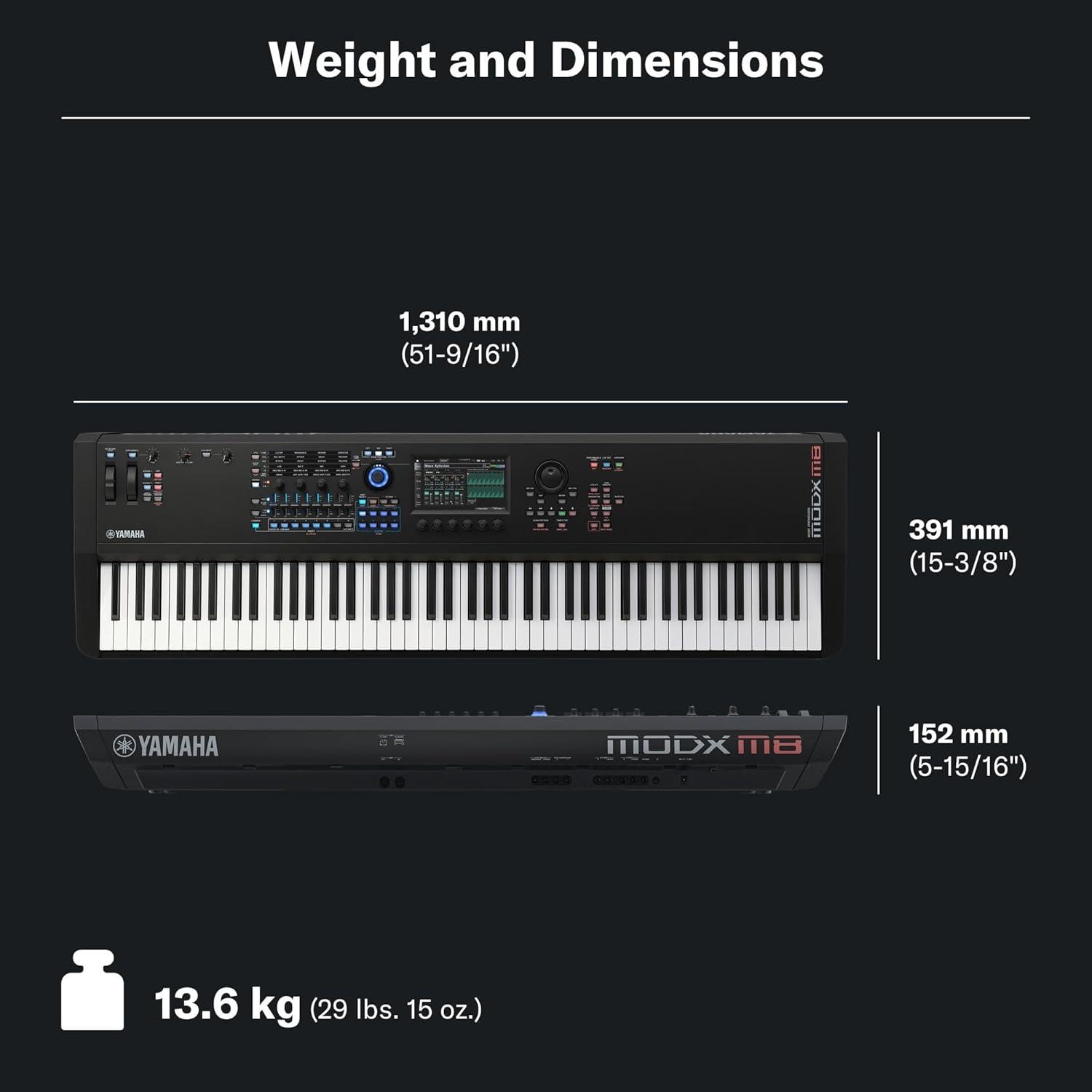 Built for pianists, the 88-key MODX M8 synthesizer delivers exceptional sound, expressive control, streamlined workflow, and realistic graded-hammer action in a lightweight design