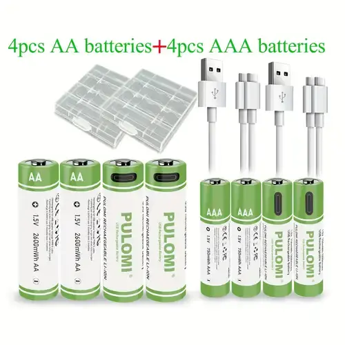 USB Rechargeable AAA Batteries, [1.5V, 4-Pack] 1300mWh Lithium Battery with Type C Cable, 1000+ Cycles Triple A Batteries for Remote Controls, Wireless Mouse, LED Flashlights.