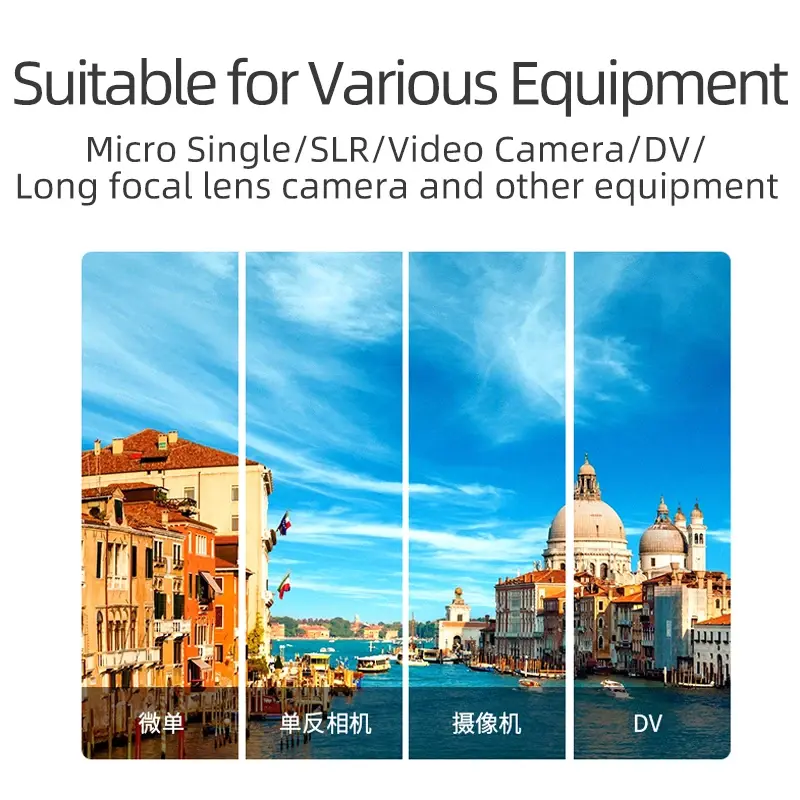 With 1/4” and spare 3/8” screw, perfect for most brands of the cameras and camcorders like canon, nikon, sony. A safety button on the left side of fluid head avoids equipment falling down.