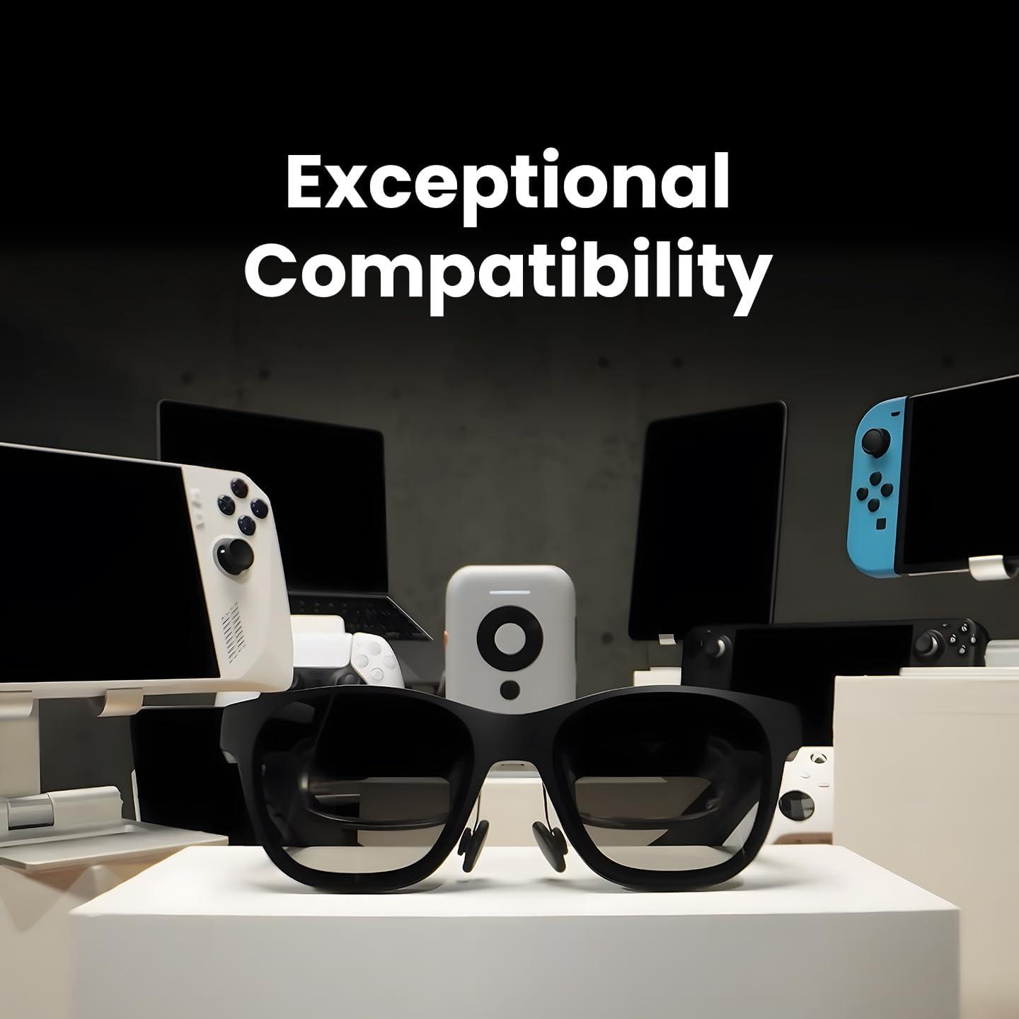 EXCEPTIONAL COMPATIBILITY: Connect to almost any smartphone, gaming console and PC using a wired connection. Connect to Switch, Steam Deck and PC using an XREAL C-C cable (included), or hook up your PS 5, Xbox and iPhone using an XREAL HDMI-C cable (Apple Lightning Digital AV Adapter is required for iPhone connections). Explore a wireless casting experience on devices that support AirPlay, Miracast or DLNA. Note: For an optimal casting experience we recommend using a wired connection.