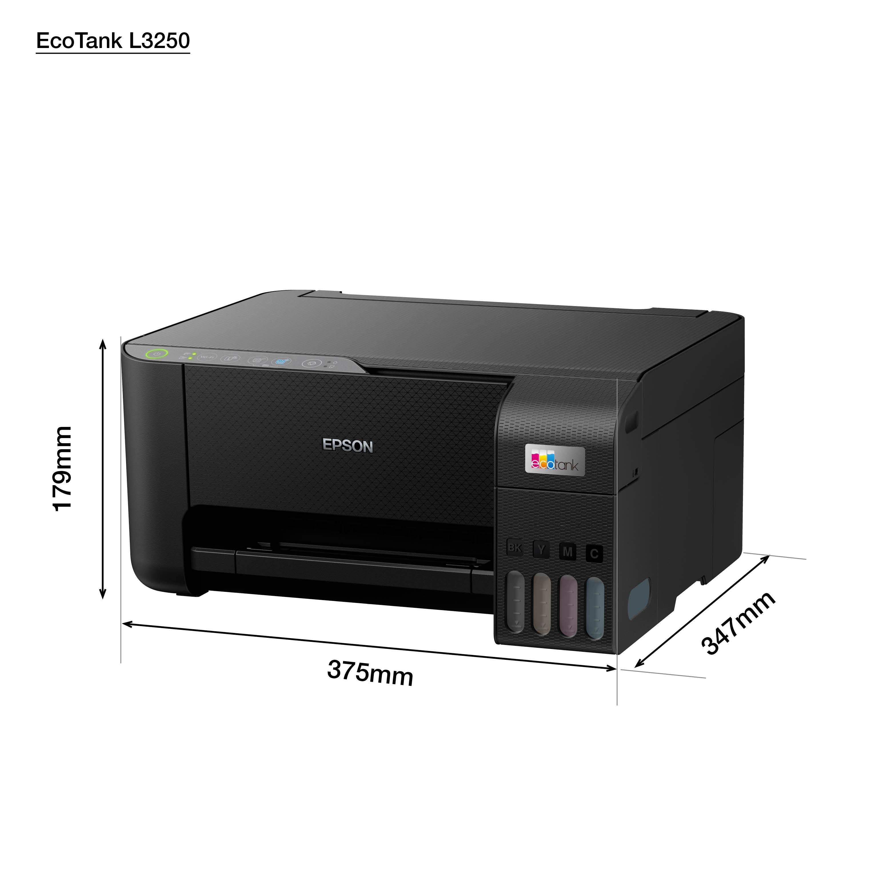 Epson l3250 printer Home ink tank printer A4, colour, 3-in-1 printer with WiFi and SmartPanel App connectivity, Black, Compact